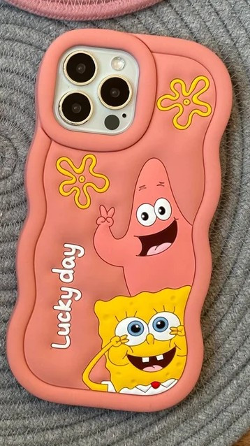 کاور سیلیکونی طرح باب اسفنجی و پاتریک مدل Locky Day مناسب آیفون 13ProMaxو12ProMax